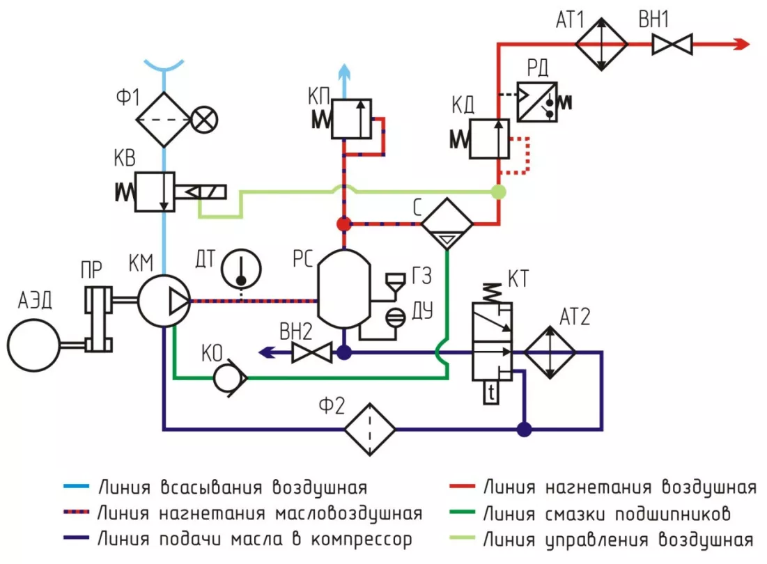 | ВН1 | Вентиль выхода сжатого воздуха |