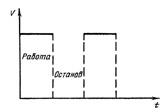 Периодические остановки двигателя компрессора (применяемые до N = 250 кВт). При остановке агрегата мощность не потребляется; при работе в постоянном режиме КПД сохраняется. Недостатки резкоеизменение параметров тока в сети, частые повторения процедур пуска и остановки компрессорного агрегата (рис. 6.1).
